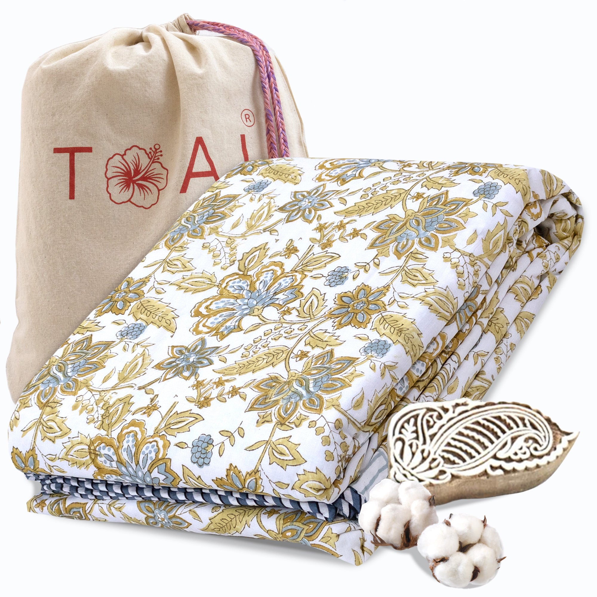 • HANDMADE FEATURE: Bedsheets and Dohars are hand block printed by expert artisans from Rajasthan. There might be slight irregularities in colour and prints which make each piece one of its kind. Colours are represented as accurately as possible but may vary slightly from what is seen on screen.