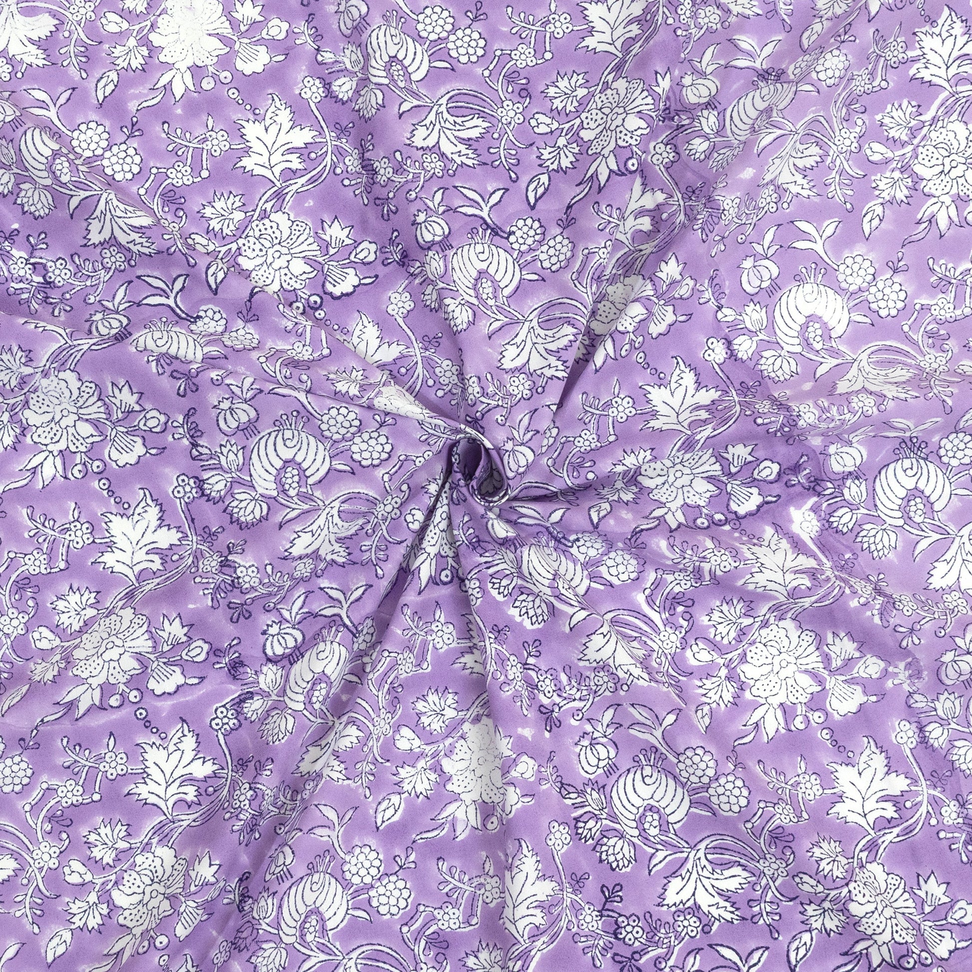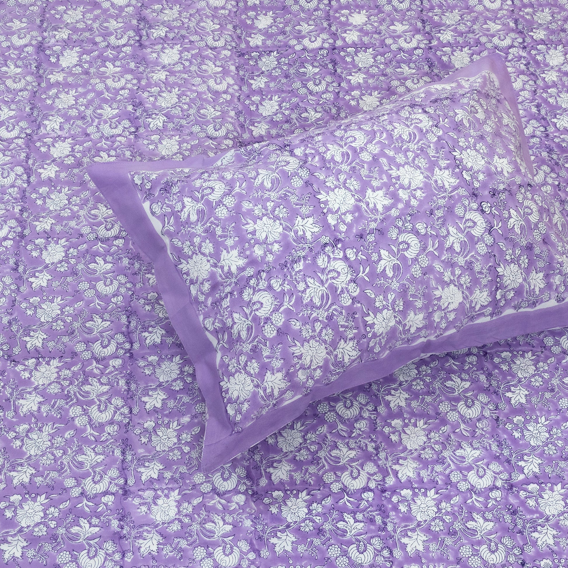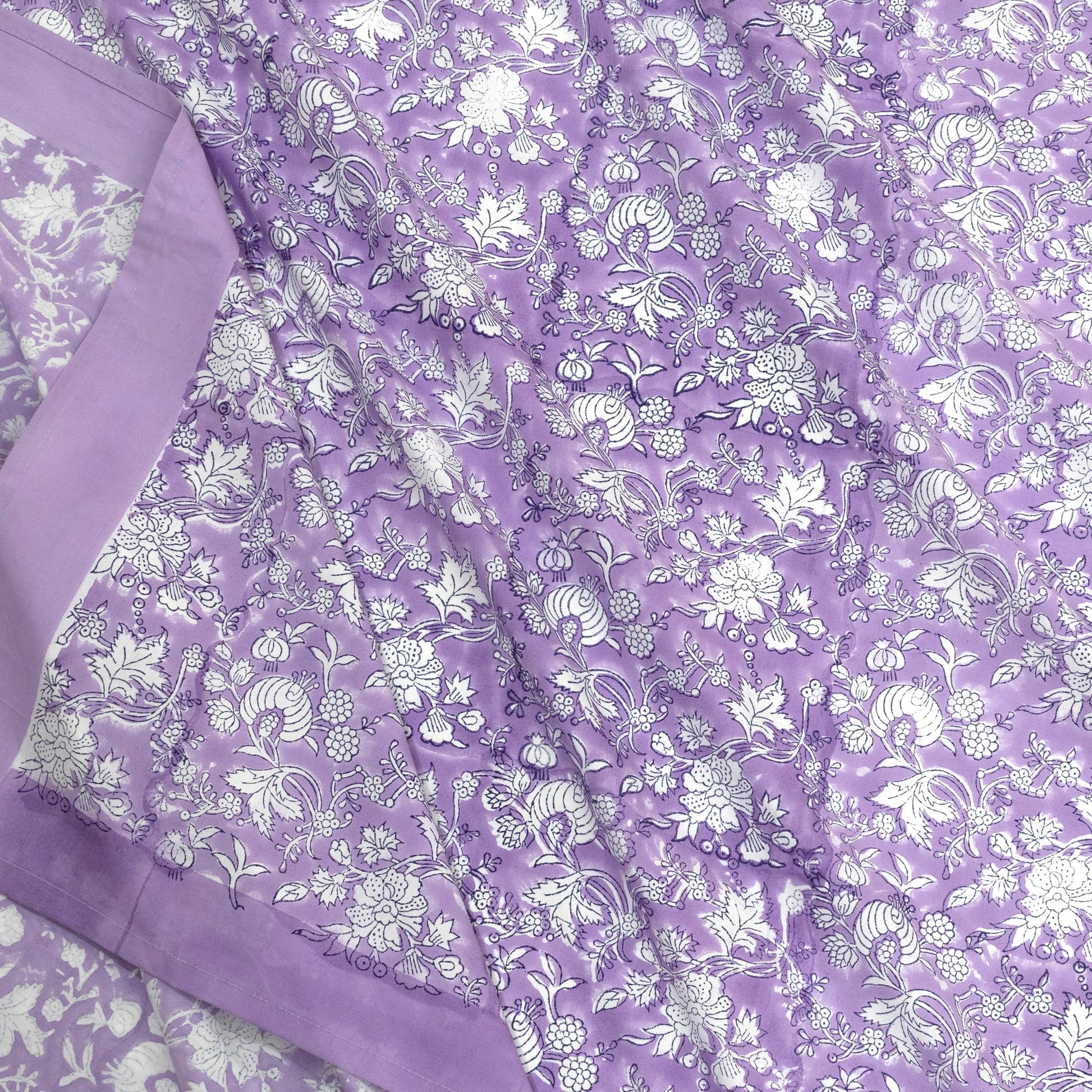 Hand Block Printed Bedsheet | Bed Spread Flat sheet Bed Sheet | Pure Cotton | King 108"x108" | Queen 90"x108" | Single 60"x90" | 300 TC Pure Cotton | 2 Reversible Pillow Covers |Lavender Kalamkari