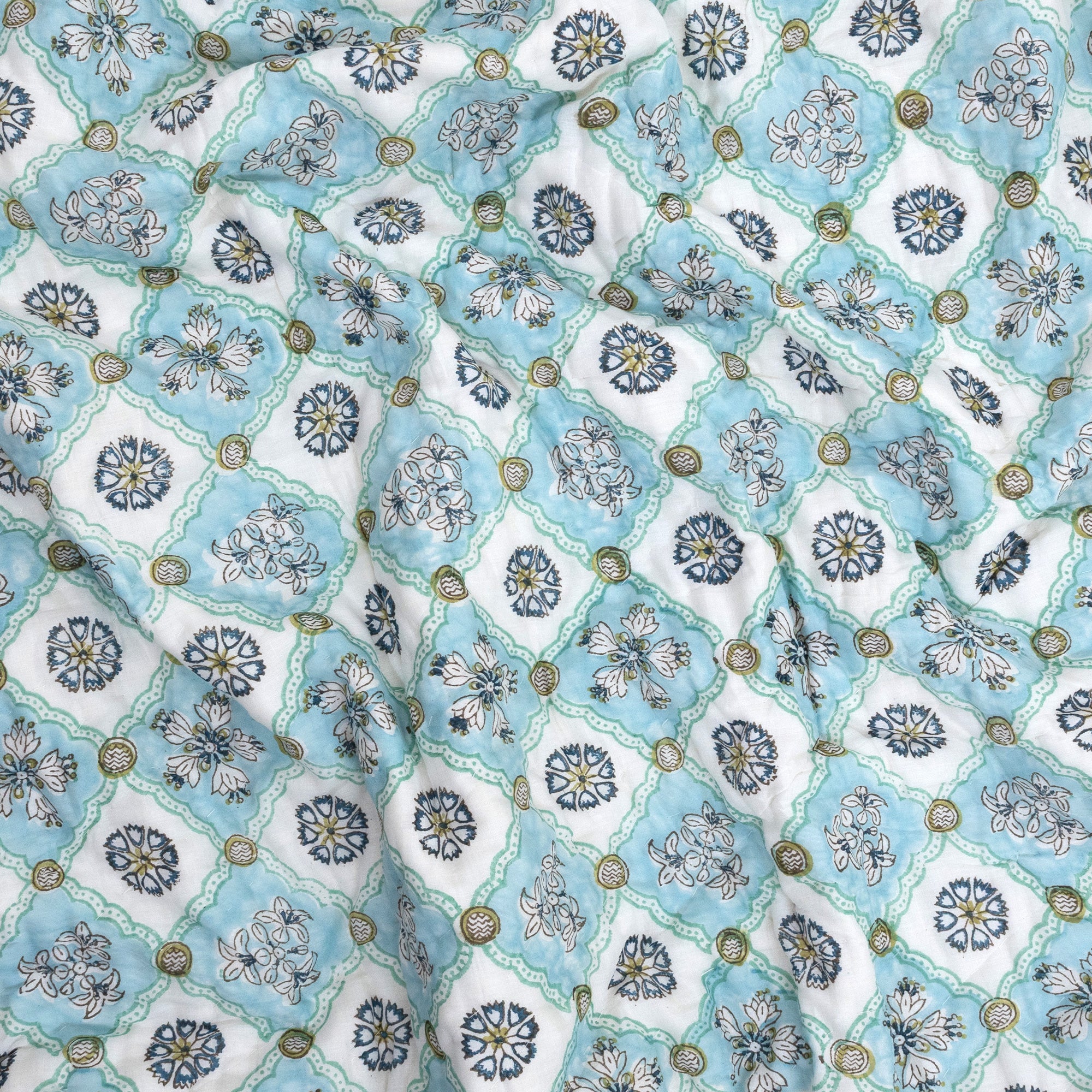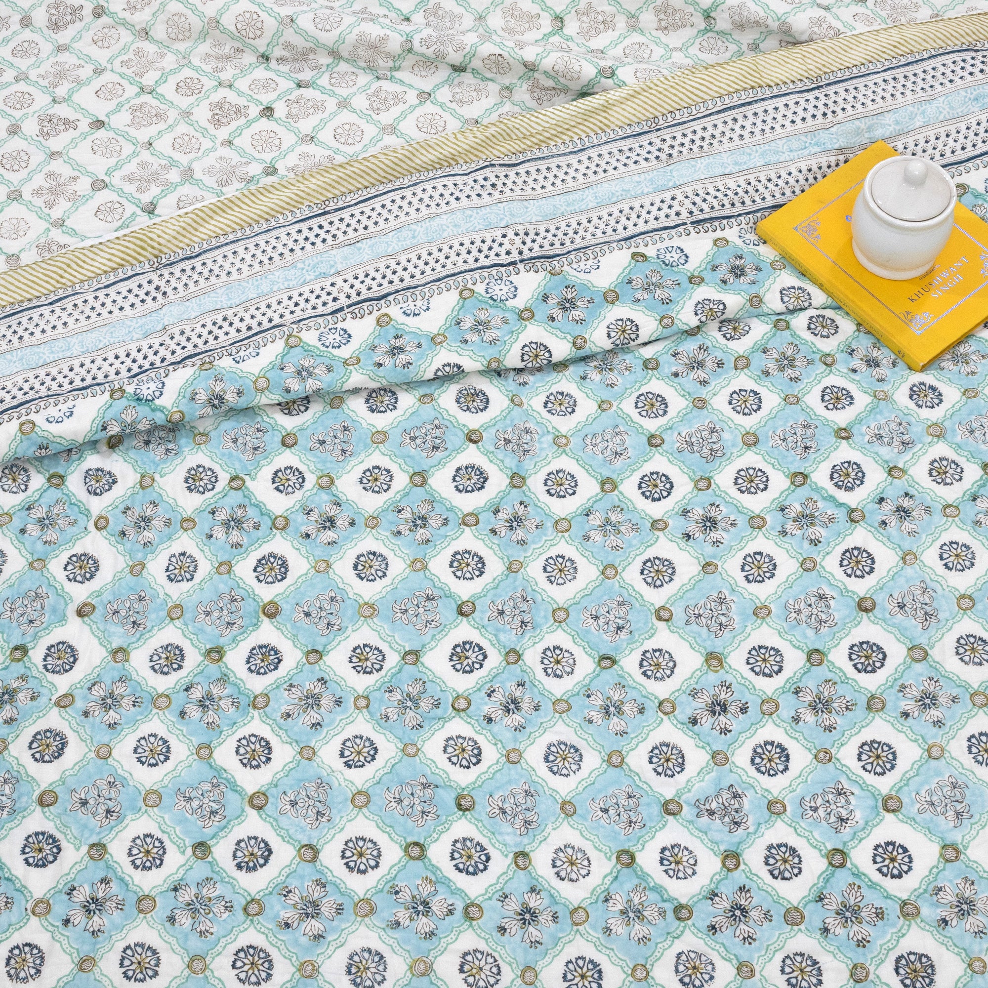 Small Blue Jaal | 300TC Quilt | 2 Pillow Covers | Mulmul Cotton Quilt| Double bed ,King size, Queen size ,Single size| 300 TC Pure Cotton|