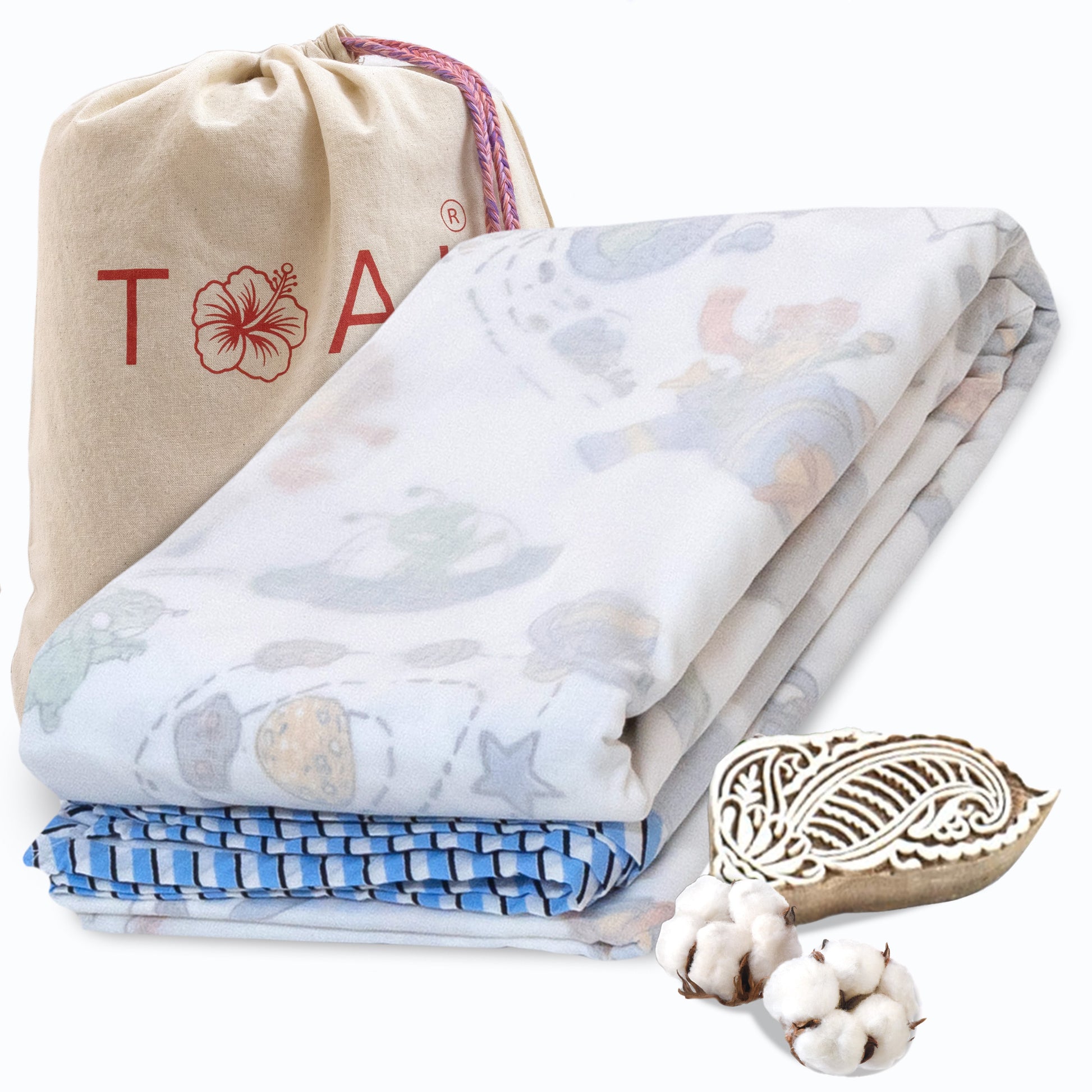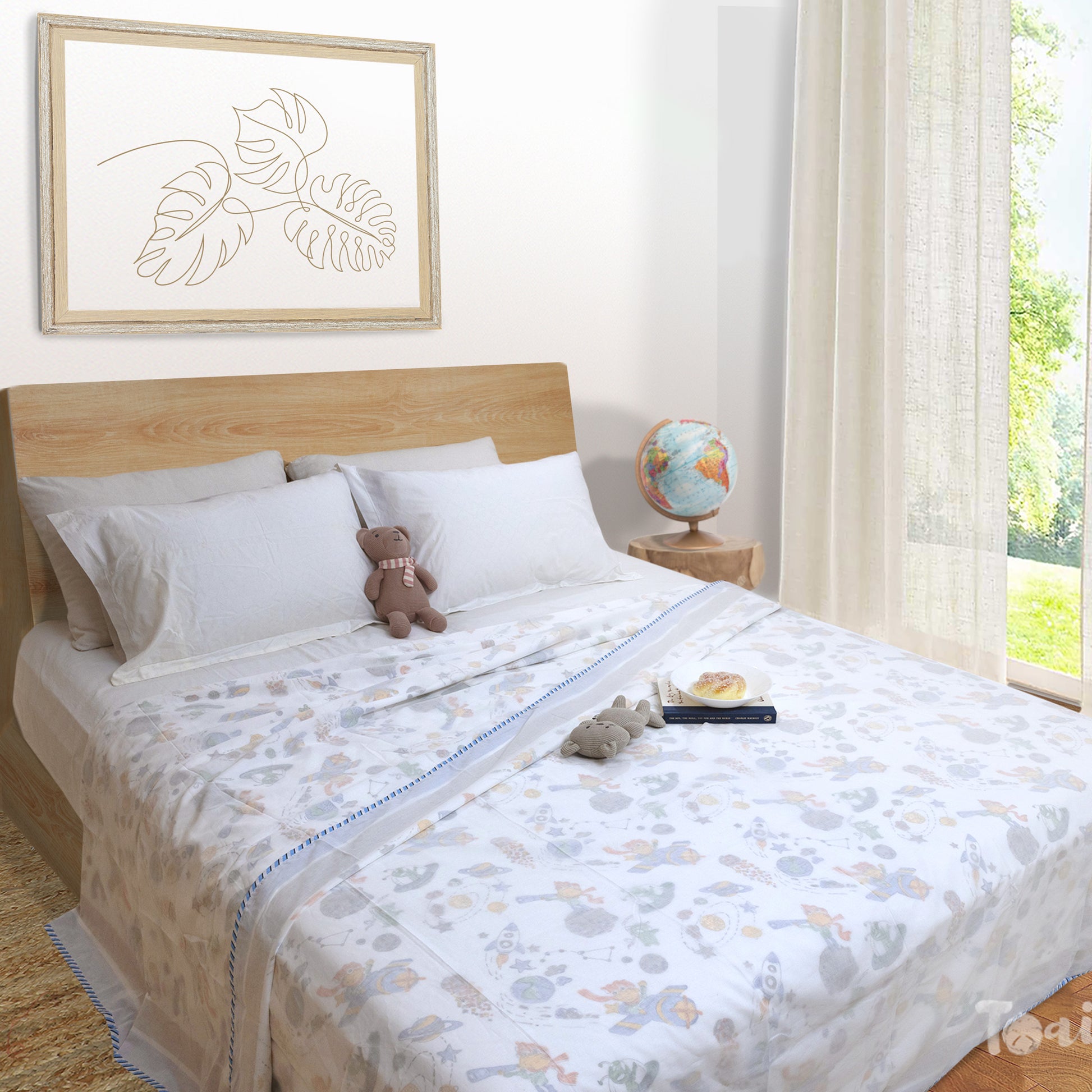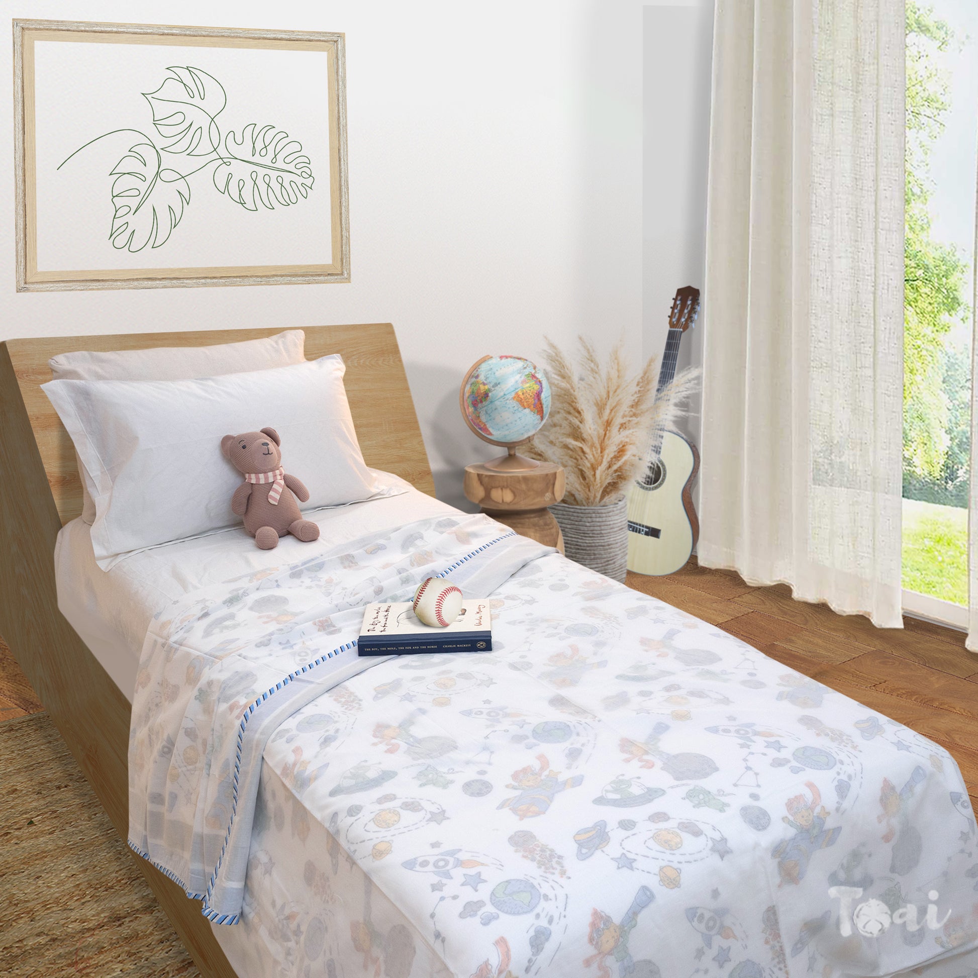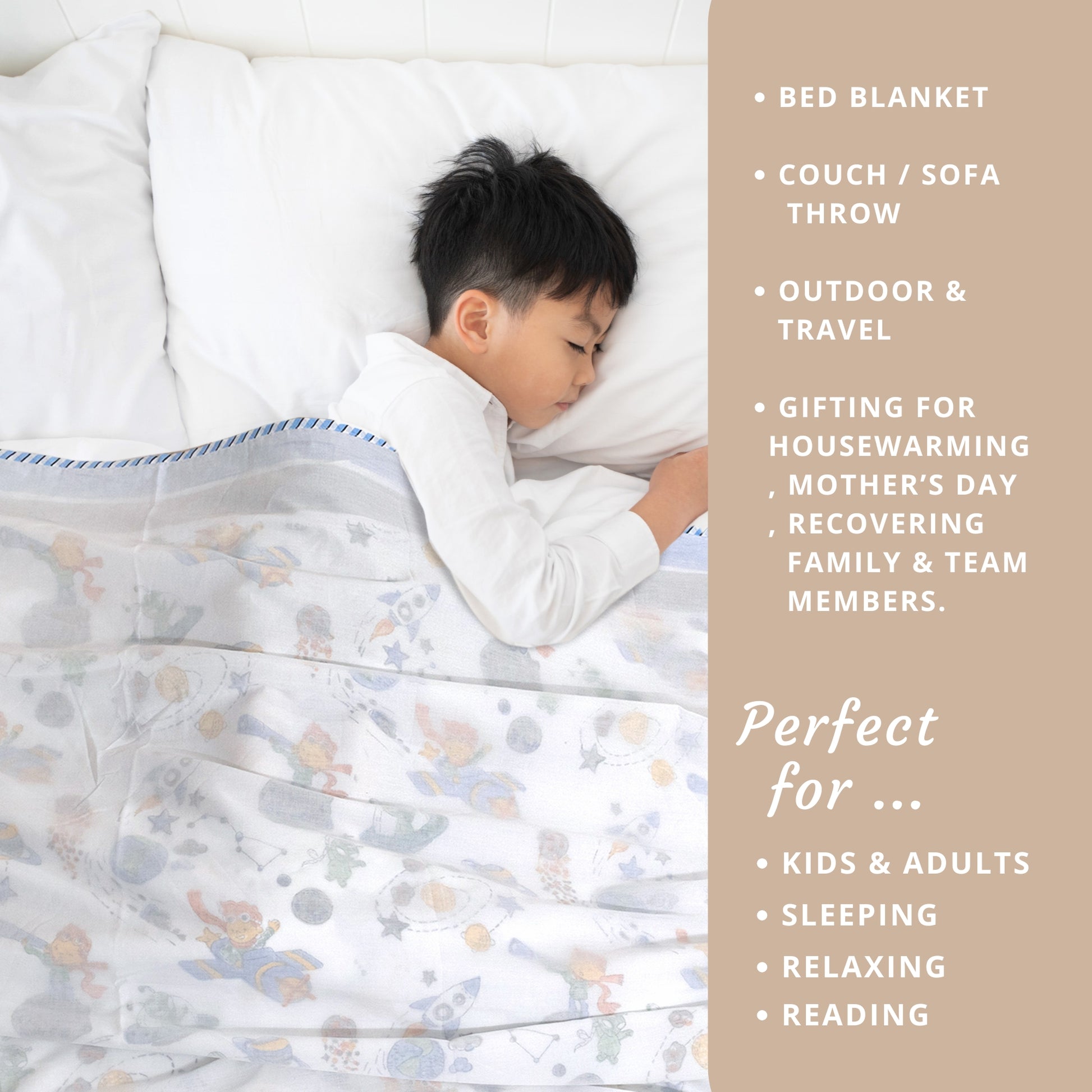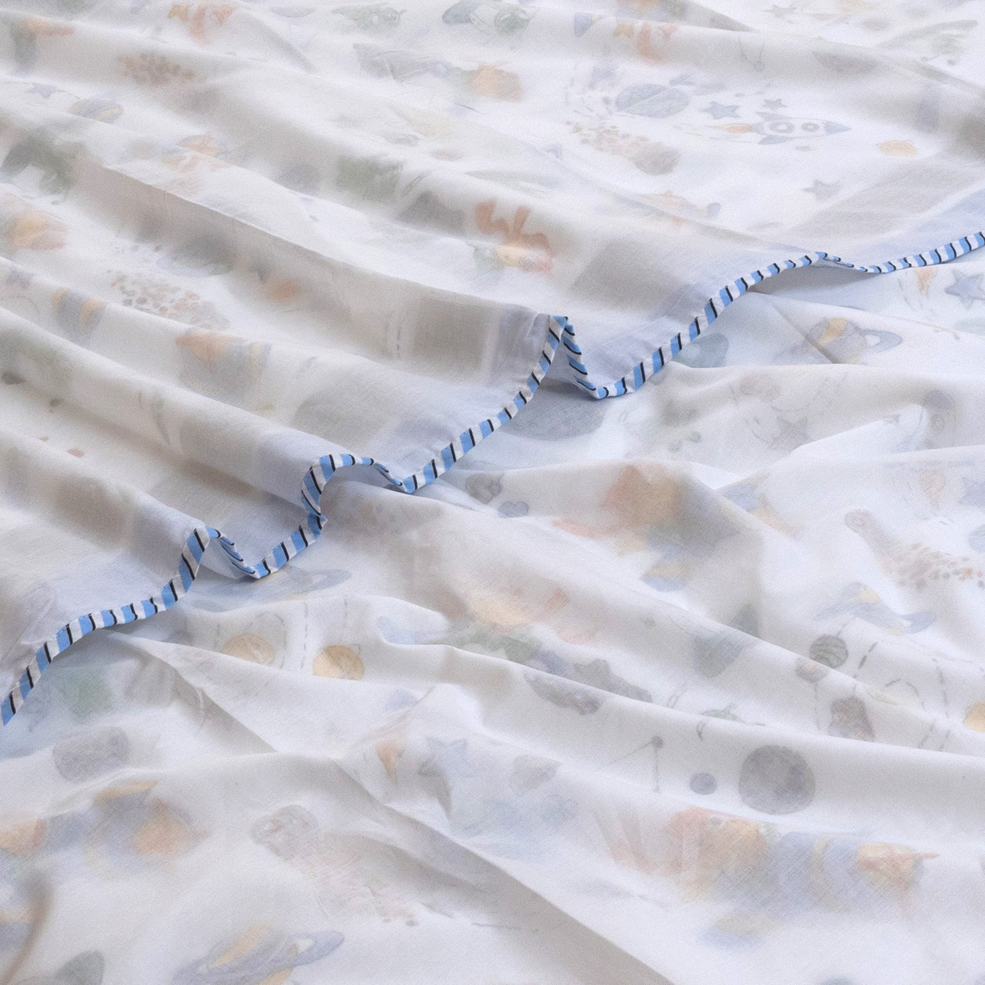 Jaipuri Dohar Hand Block Printed 3 Layers Reversible 100% Mulmul Cotton | Single 60" X 90" | Queen 90"x108" | King 108"x90" (Space Boy)