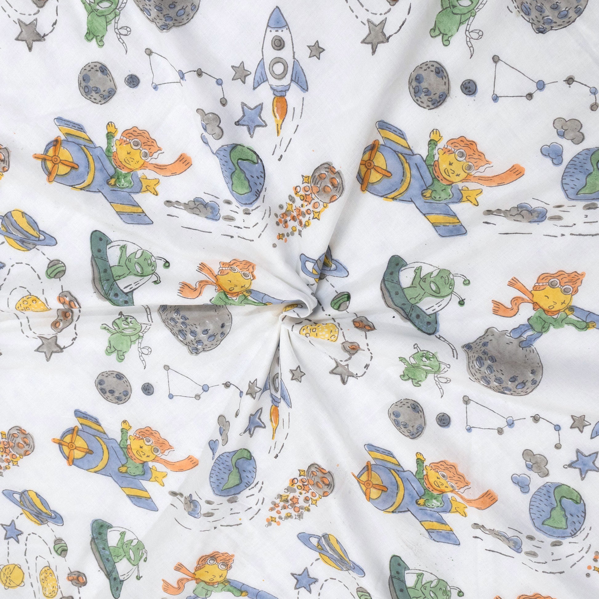 Hand Block Printed Bedsheet | Bed Spread Flatsheet Bed Sheet | Pure Cotton | King 108"x108" | Queen 90"x108" | Single 60"x90" | 300 TC Pure Cotton | 2 Reversible Pillow Covers |Space Boy