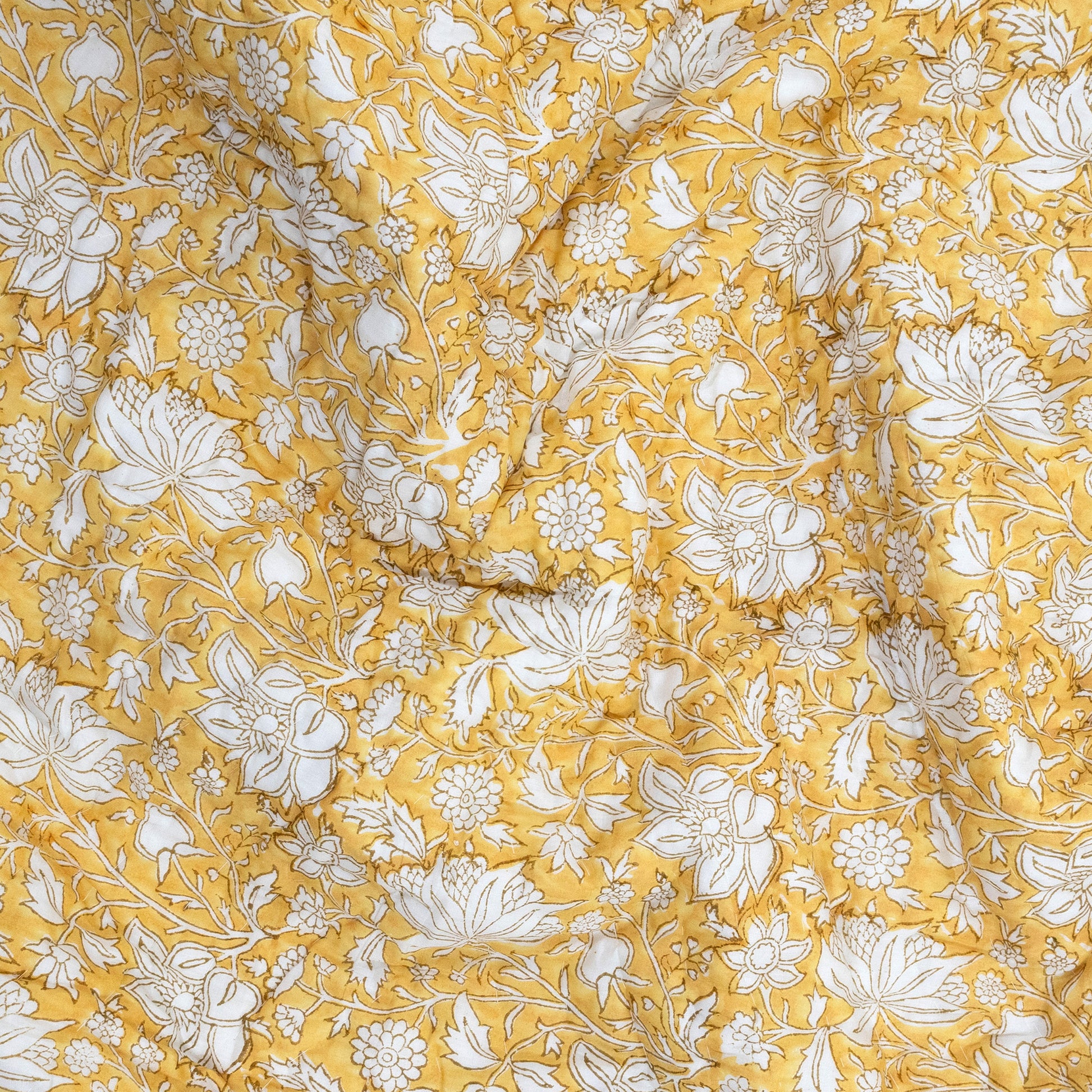 Jaipuri Quilt | Lightweight Comforter/Razai/Rajai | Hand Quilted | Block Printed Reversible 3 Layer| Premium Mulmul Cotton| Cotton Wool Filling| Single 60” X 90” | Queen 90" X 108" | King 108" X 90" (Mustard Yellow Kalamkari)