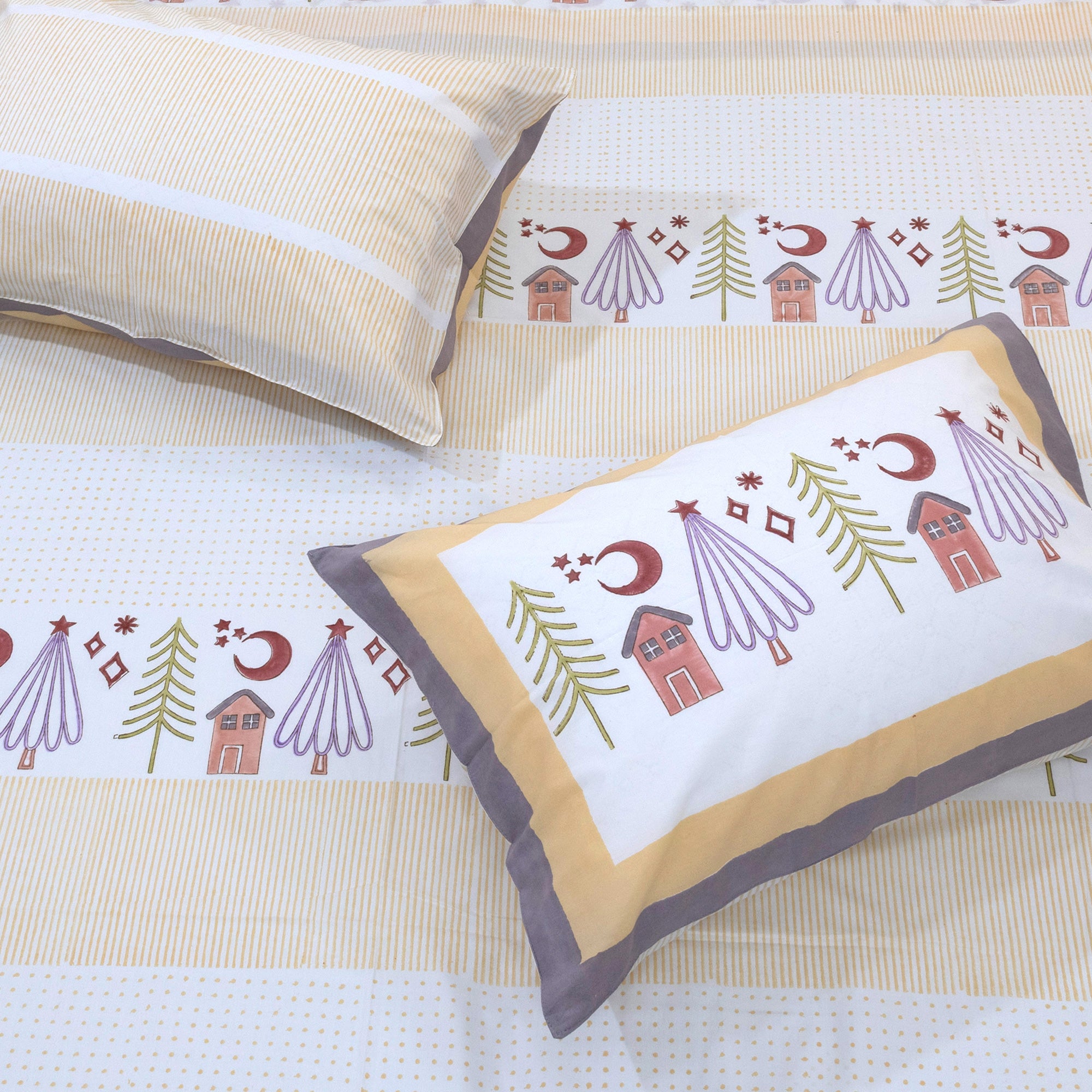 Yellow Polka Bedding Set | 300TC Bedsheet | 2 Pillow Covers | Mulmul Cotton Dohar